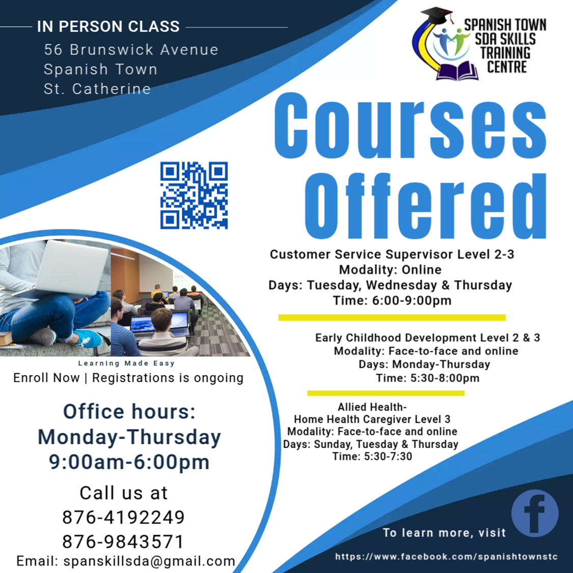 The Spanish Town SDA Skills Training Centre is situated along the busy thoroughfare of Brunswick Avenue, that takes traffic towards Bog Walk/Linstead and the business hub of Spanish Town in the opposite direction.